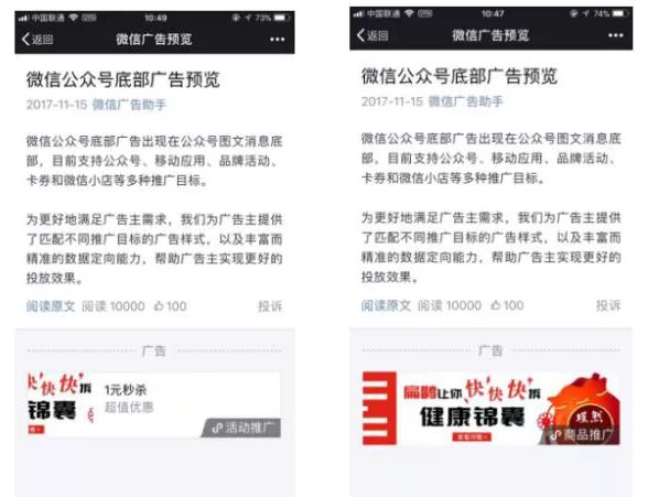 小程序可通過公眾號(hào)文章底部廣告位推廣